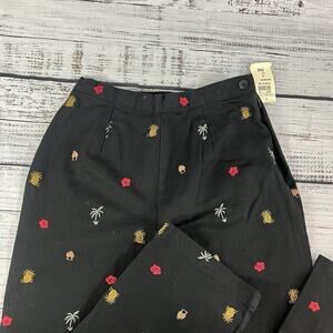 Coldwater Creek Pants sz 6 Black Tropical Palm Trees Pineapples Flowers Stretch