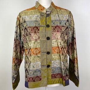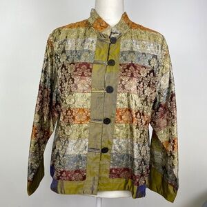 Coldwater Creek Patchwork Silk Multicolor Button Front Petite Large Jacket