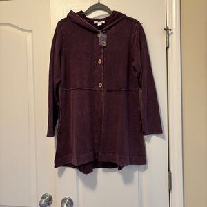 Coldwater Creek Petite Medium Fleece Swing Cardigan in Black Raspberry