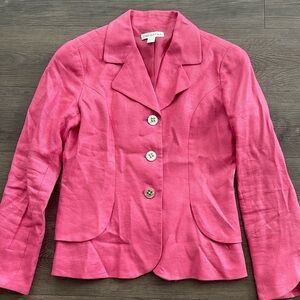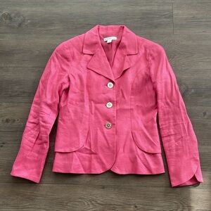 Coldwater Creek Petites Linen Blazer with Tulip Bracelet Sleeves Pink