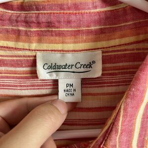 Coldwater Creek Pink Striped Button Up Blouse Womens Size Petite M 100% Linen