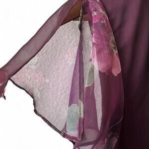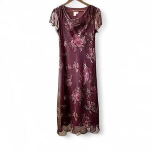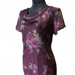 Coldwater Creek Plum Floral Chiffon Maxi Dress Cowl Neck Flutter Sleeve 10