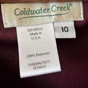 Vintage Coldwater Creek maxi in deep plum chiffon with romantic pink rose print. Features a draped cowl neckline, semi-sheer flutter sleeves, and a flowing lined skirt that moves beautifully. Feminine, elegant, and perfect for fall and winter weddings. Excellent condition, 100% polyester, made in the USA.