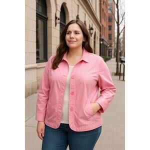 Coldwater Creek Plus Button‑Front Jacket 1X Women Pink Cotton‑Spandex Stretch