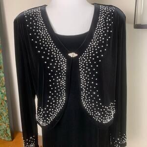 Coldwater Creek Plus Sz 16 2-Piece Velvet Maxi Dress Bolero Studs Evening Stretch