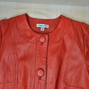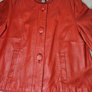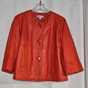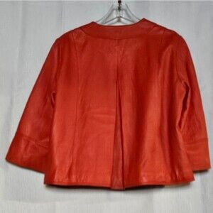 Coldwater Creek Pumpkin Orange Button Front Side Pockets Flared Leather Jacket