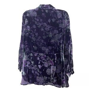 Coldwater Creek Purple Dark Floral Velvet Tunic Top Blouse 1X Button Front Moody