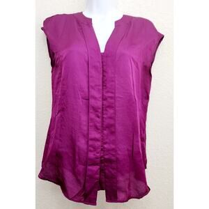 Coldwater Creek Purple Hidden Button Sleeveless Top XS Lightweight Pleated Soft