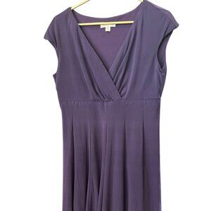 Coldwater Creek Purple Jewel Tone Midi Dress Empire Waist V Neck Fully Lined Sz