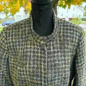 Coldwater Creek Purple Tailored Tweed Jacket Sz 14 Pockets Lined Snap Buttons