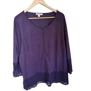 Coldwater Creek Purple Women’s 3/4 sleeve Velour Tunic Lagenlook Arttsy 2X 20/22