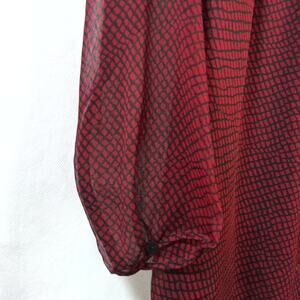 Coldwater Creek Red Black Print Woven Round Neck Sheer Long Sleeve Size M