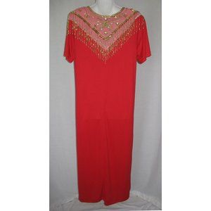 Coldwater Creek Red Dangling Bead Trim Maxi Dress Women's L
