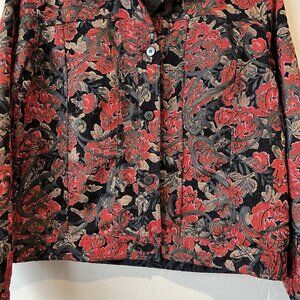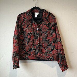 Coldwater Creek Red Embroidered Floral Corduroy Jacket Medium Holiday Gold Boho