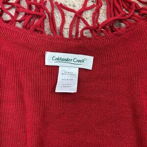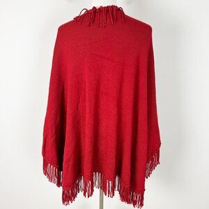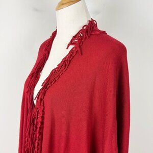 Coldwater Creek Red Fringe Sweater Cape Shawl Poncho Wrap One Size Women's