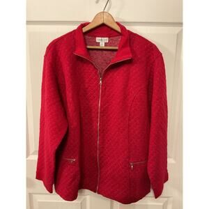 Coldwater Creek Red Textured Boucle Metallic Knit Zip-Up Jacket,1x