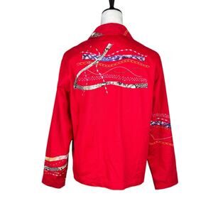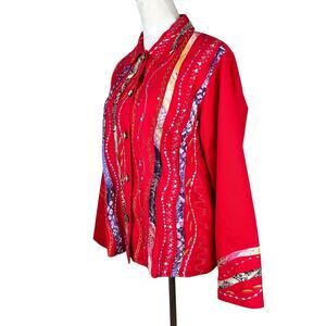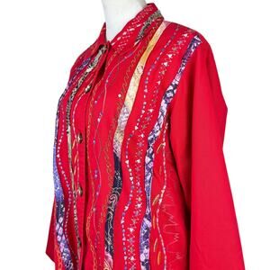 Coldwater Creek Red Woven Embroidered Embellished Art to Wear Button Jacket