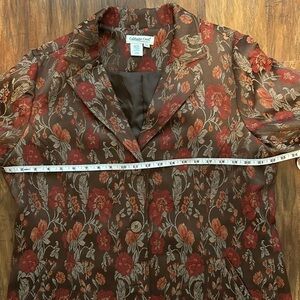 Coldwater Creek Red and Tan Trench Coat with Vintage Floral Design