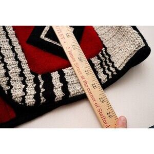 The Coldwater Creek Red Patchwork Wool Knit Felt Art to Wear Artsy Jacket in size small is a unique and stylish outerwear piece for women. Made from a wool blend knit fabric, this jacket features a geometric pattern in a vibrant red color. Perfect for casual occasions during the winter, fall, or spring seasons, this jacket has a button closure and a regular fit. With its artsy design and high-quality material, this jacket is sure to make a fashionable statement in any wardrobe.