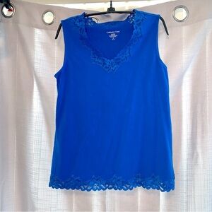 This bright royal blue sleeveless lace accent top is in EXCELLENT gently worn condition!