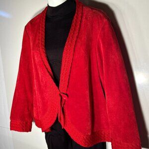 Coldwater Creek SZ 2X Red Suede Leather Jacket Wool Blend Sweater Old Money Boho