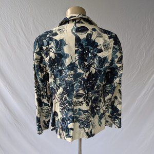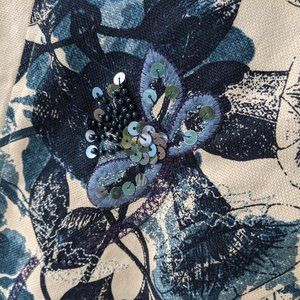 lightly padded shoulders. cute sequin details in the flowers. brings just the right amount of flare and fun!