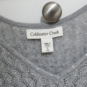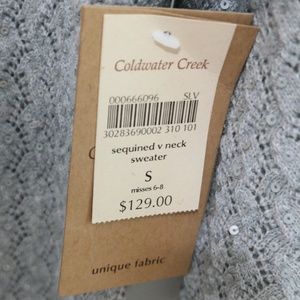 Absolutely gorgeous pale grey/silver lightweight sweater with the most subtle sheen from very tasteful sequins. Love, love, love this sweater....if only I were truly a size small any more. Brand new with tags, perfect for fall!