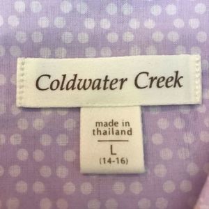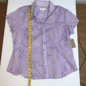 New with tags from Coldwater Creek in a women’s large: a perfect blend of feminine styles creates this lightweight, short sleeve, button-down shirt. Sheer purple fabric with embroidered paisley print. Retail for $50. Measurements are in photos. Please let me know if you have any questions and I do offer 30% off of bundles of 3 or more items! :)