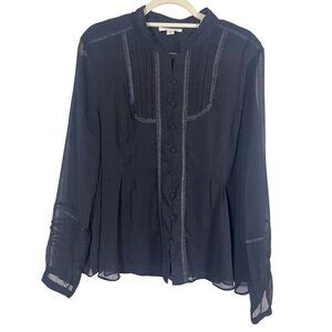 Coldwater Creek Sheer Top XL Black Witchy Whimsigoth Fairy Peasant Boho Western