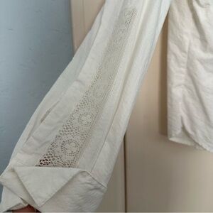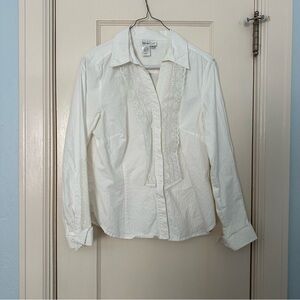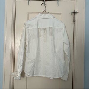 Coldwater Creek Shirt Button Up Pirate Ruffle Front Lace White Long Sleeve Sz PM