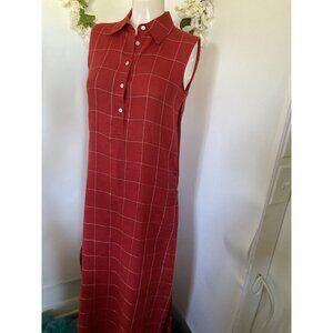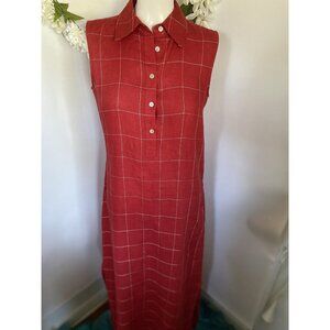 Vintage 1990s Coldwater Creek Shirt Maxi Colum Dress Size 6 Women Red and White Plaid Linen Blend Button Up Sleeveless. Pit to Pit: 17". Waist: 15.5". Hips: 20" . Length: 53". Excellent Condition!!!