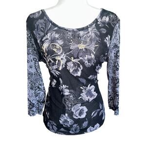 Coldwater Creek Shirt W goth core 3/4 Sleeve Sheer Lined Blouse