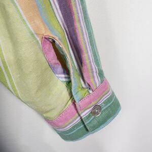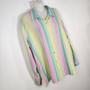 Coldwater Creek Shirt Womens Size XL Linen Button Front Striped Yellow Pastel