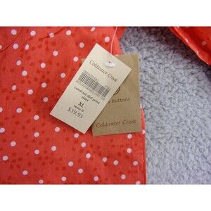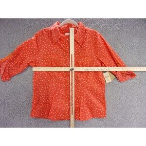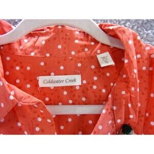 Coldwater Creek Shirt Womens XL Polka Dots Contrast Orange Button Collared
