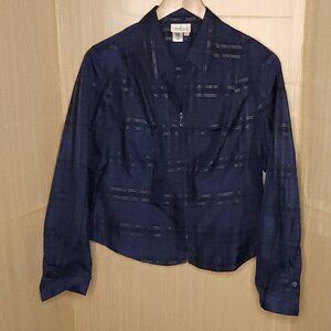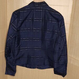 Coldwater Creek Silk Blend Blue Plaid Full Zip Lightweight Blazer Jacket Large