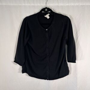 Coldwater Creek Silk Blend Cardigan Women's Large 14 Black Button Up Round Neck