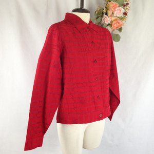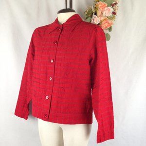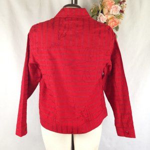 Coldwater Creek Small Red Silk Blend Embroidery Blazer Jacket Button Up.