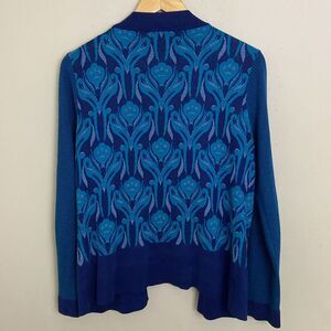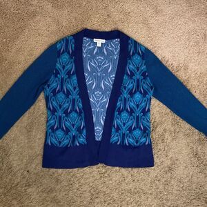 Coldwater Creek Silk Blend Shades of Blue Mixed Prints Open Cardigan Size Small