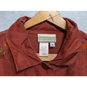 Coldwater Creek Silk Jacket Women's M Rustic Brown Embroidered Floral Button Up