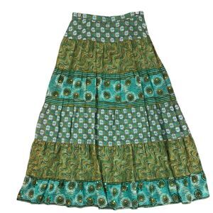 Coldwater Creek Silk Maxi Skirt Size S Green Sequin Forest Fairy Goblin Boho Y2K