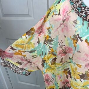 Coldwater Creek Silk Watercolor Floral Poncho Top L/XL