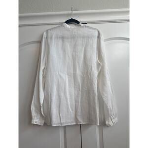 Coldwater Creek Size Large 100% Linen Pleaded Button Down Long Sleeve Blouse