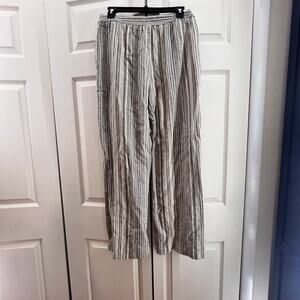 Coldwater Creek Size M Linen Blend Striped Elastic Waist Black, Gray and Brown