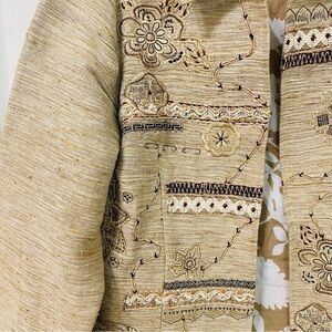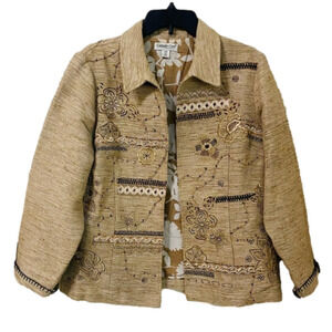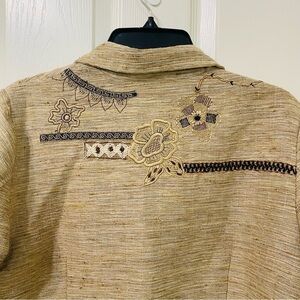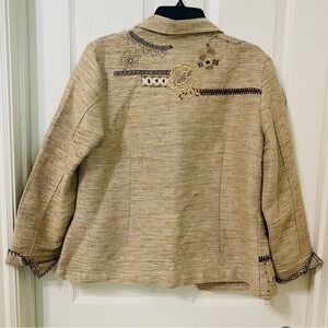 Coldwater Creek Size PM Linen Embroidered Floral Tan Button Up Lined Jacket