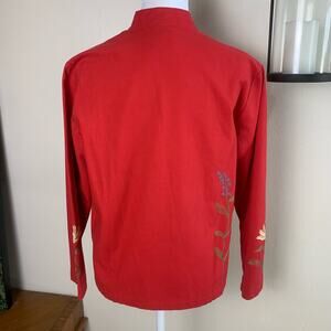 Coldwater Creek Size PM Petite Embroidered Floral Details Jacket Red Pockets