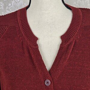 Coldwater Creek Size XL Dark Rust Button Up Cardigan Split Vneck Knit Long Slv