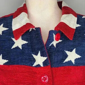 Coldwater Creek SizeMedium American Flag Jacket Chenille Red Blue Stars Stripes