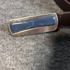 Coldwater Creek Slim Brown Genuine Leather Belt Blue Clip Buckle Women's Size L