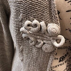 Stay cozy and stylish with this elegant tan and gold sweater. Perfect for any occasion. Has lobster claw clasps. Made of cotton and nylon.