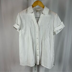 Coldwater Creek Small Bamboo Rayon Pleat Retro Vintage Resort Button Up Blouse